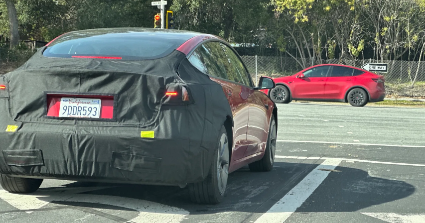 此前改款的 Model 3 已经在美国开始道路测试,有用户拍到这款新车的路测谍照,前后端做了严密的伪装。