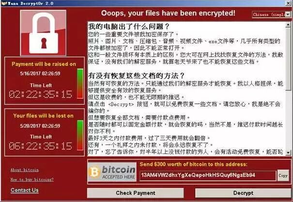 5月12日晚,新型“蠕虫式”勒索软件 WannaCry 在全球爆发,攻击各国政府,学校,医院等网络。我国众多行业大规模受到感染,其中教育网受损*为严重,攻击造成大量教学系统瘫痪。